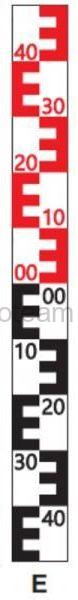 E - stupnice z poloviny v černé barvě az poloviny v červené barvě - od 0,5m do 0,5m